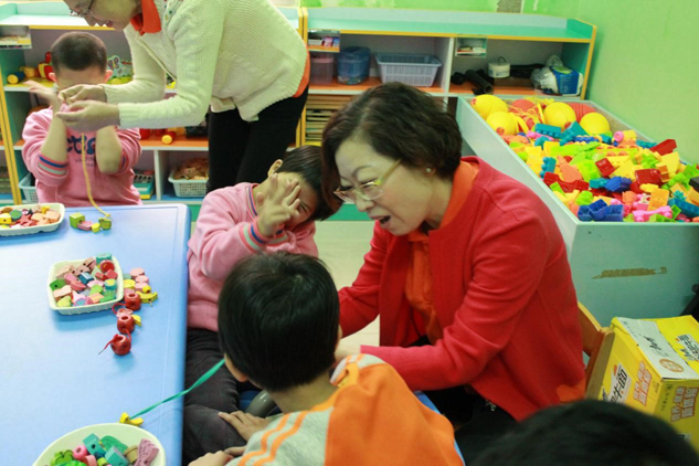 ▲基金会执行理事长刘景萍女士带领孩子们做手工